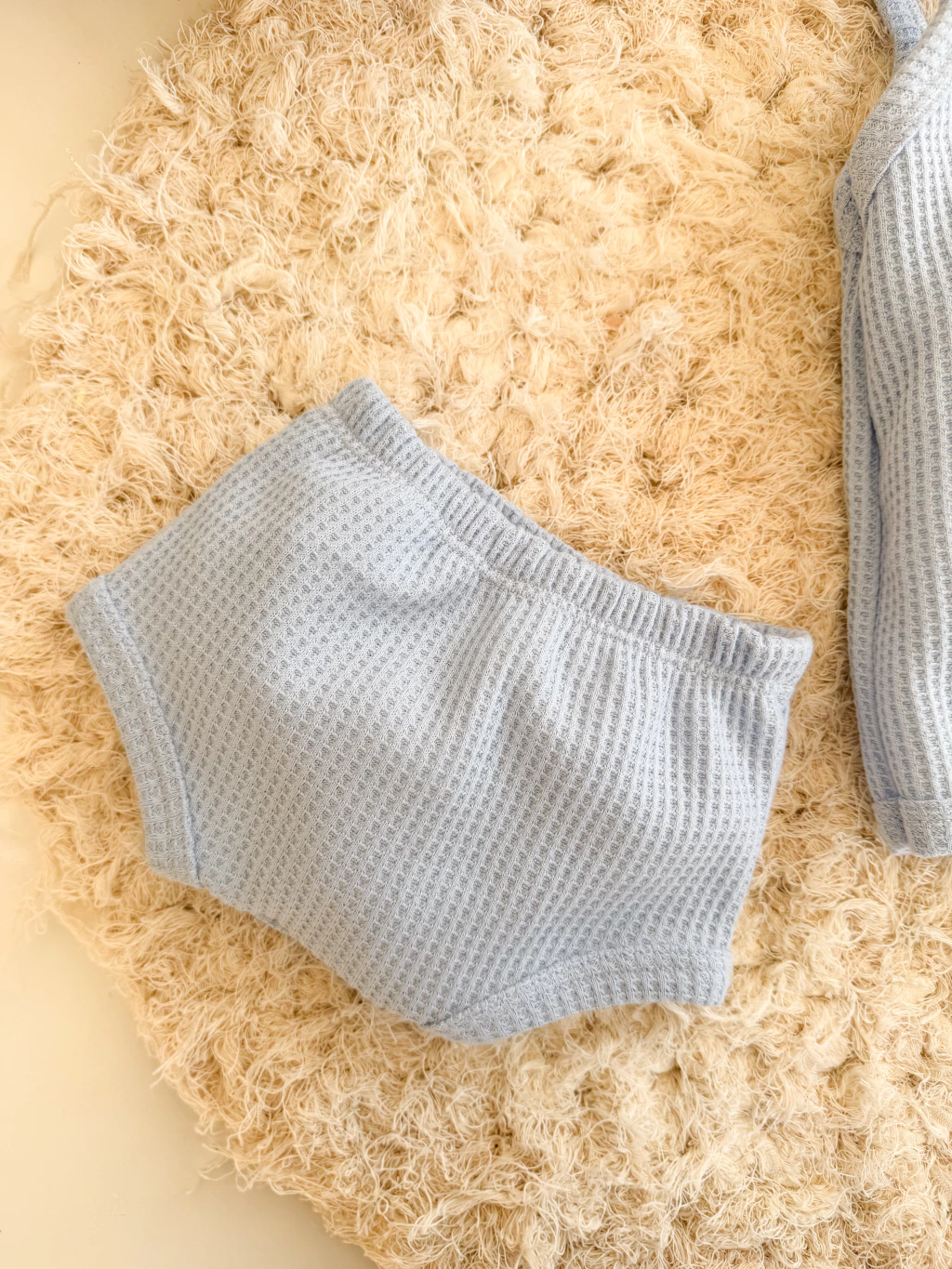 Un conjunto fresco y lleno de encanto para los días cálidos. Incluye body de tiritas con delicados botones en el frente y bombachudo de tela waffle, suave y liviana para la piel de tu bebé.